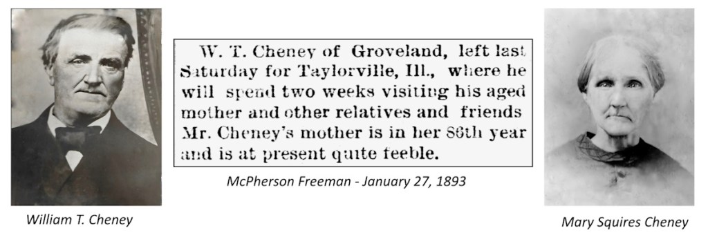 In January, William Cheney went to Illinois to visit family, particularly his ailing mother. Mary Squires Cheney was age 86.