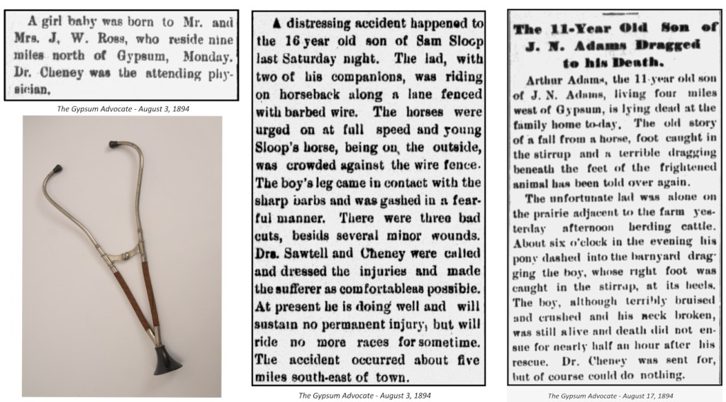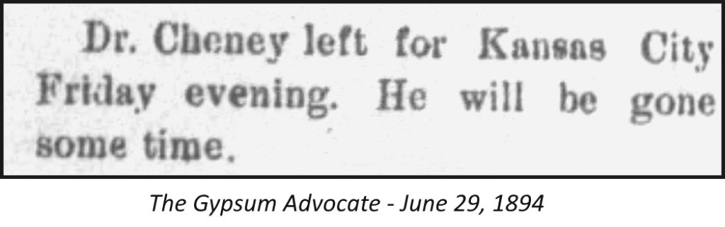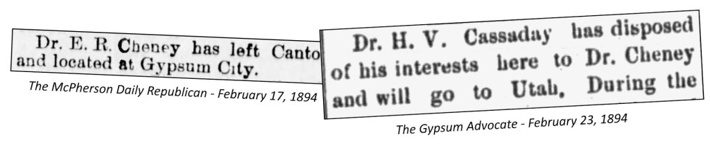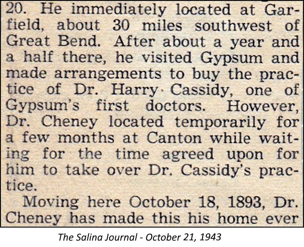 By July, Dr. E.R. Cheney had arranged to buy the medical practice of Dr. Harry Cassidy in Gypsum, Kansas.