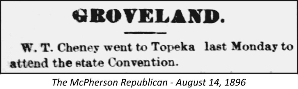 As busy as farm life was, W.T. Cheney continued to be active in local politics. At the Kansas Republican Convention,