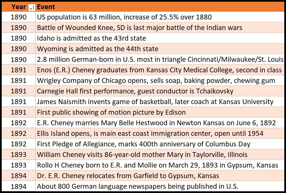 The 1890s are full of Cheney news and family events. Family visits. Crop reports. W.T. Cheney is active in local politics and Sunday School. Ralph and Mollie Cheney moved to Gypsum and are having kids.
