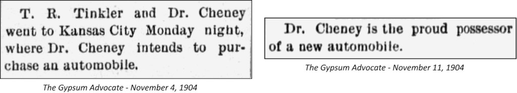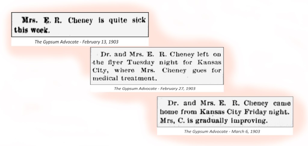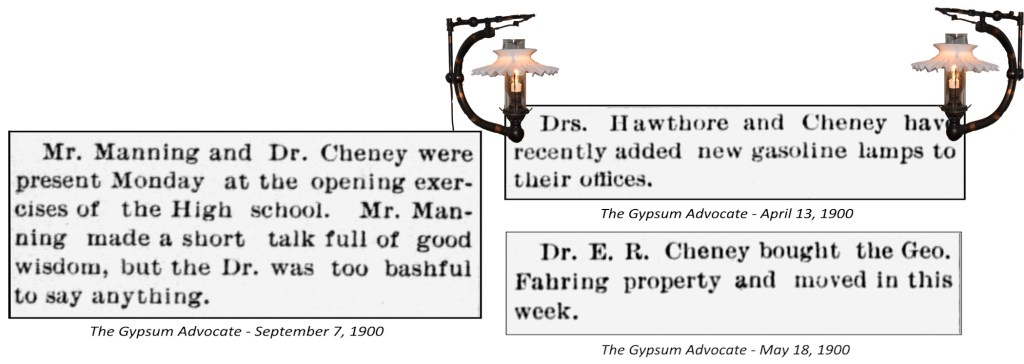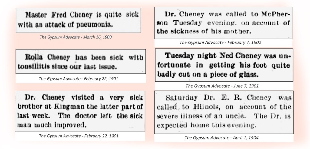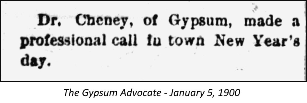 Of course Dr. Cheney treated the maladies of the people of Gypsum and surrounding towns and farms. He also took care of family and relatives.