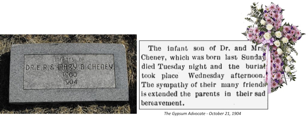 - Headstone – Infants Cheney – Gypsum Cemetery – Gypsum, Kansas – FindAGrave – https://www.findagrave.com/memorial/33474321/infant_son-cheney