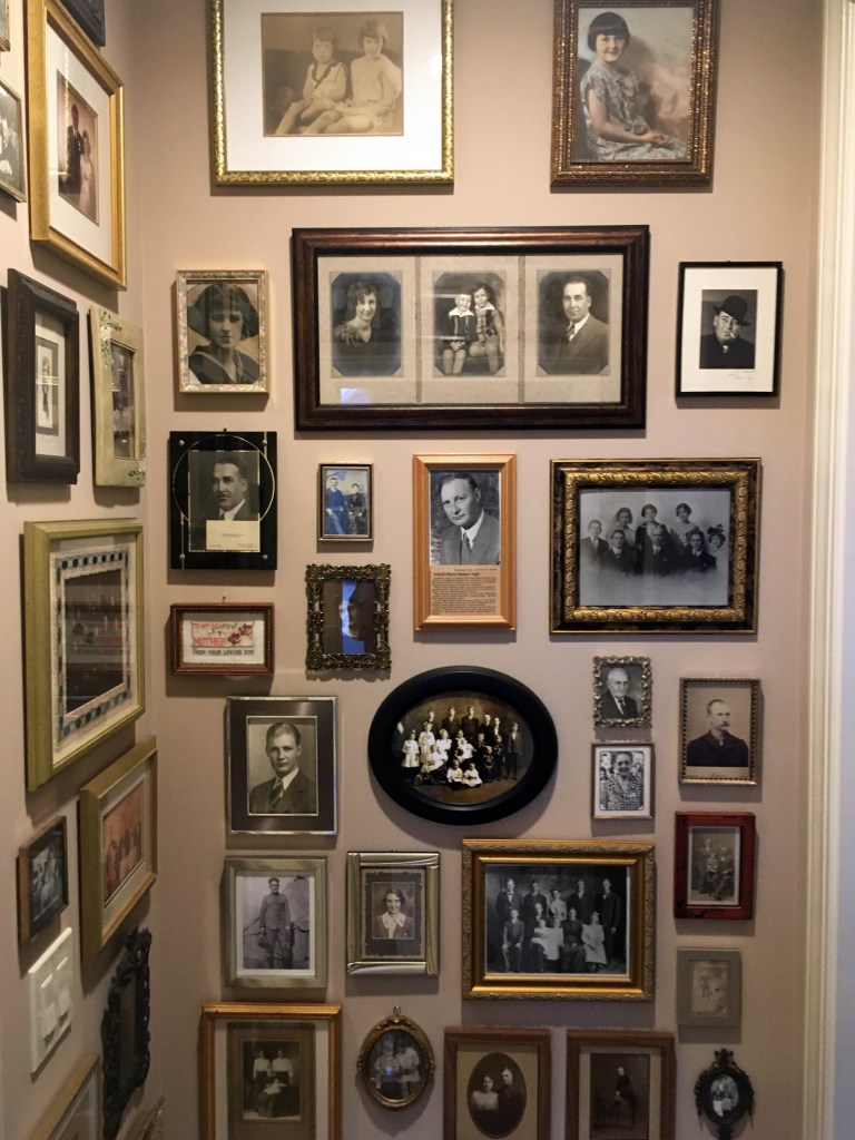 Cathy and I have always had a soft spot for old family photos, mementos, furniture pieces, etc. Our home displays lots of these mementos, including an ancestor photo wall.