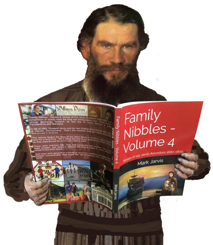 Continue readingIn fall of 1683, Elizabeth Jervis and her two children disembarked their ship at Chester, Pennsylvania. That’s the moment that our Jarvis ancestors first arrived in America.
