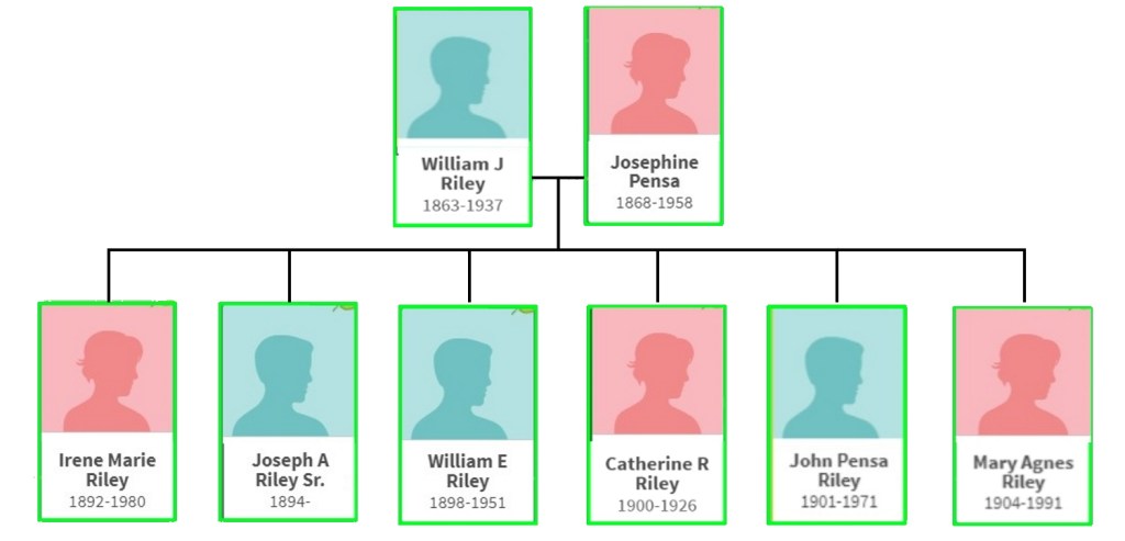 It’s 1890. Josie Pensa has been staying at her sister Kate Gardella’s in Sedalia. She’s met William Riley, and they’re going to get married. We’ll meet Will and his family.