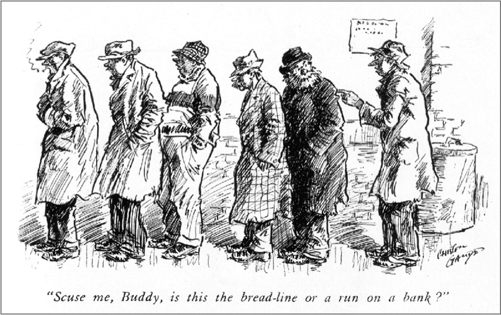 Unemployed men outside a soup kitchen opened in Chicago by Al Capone